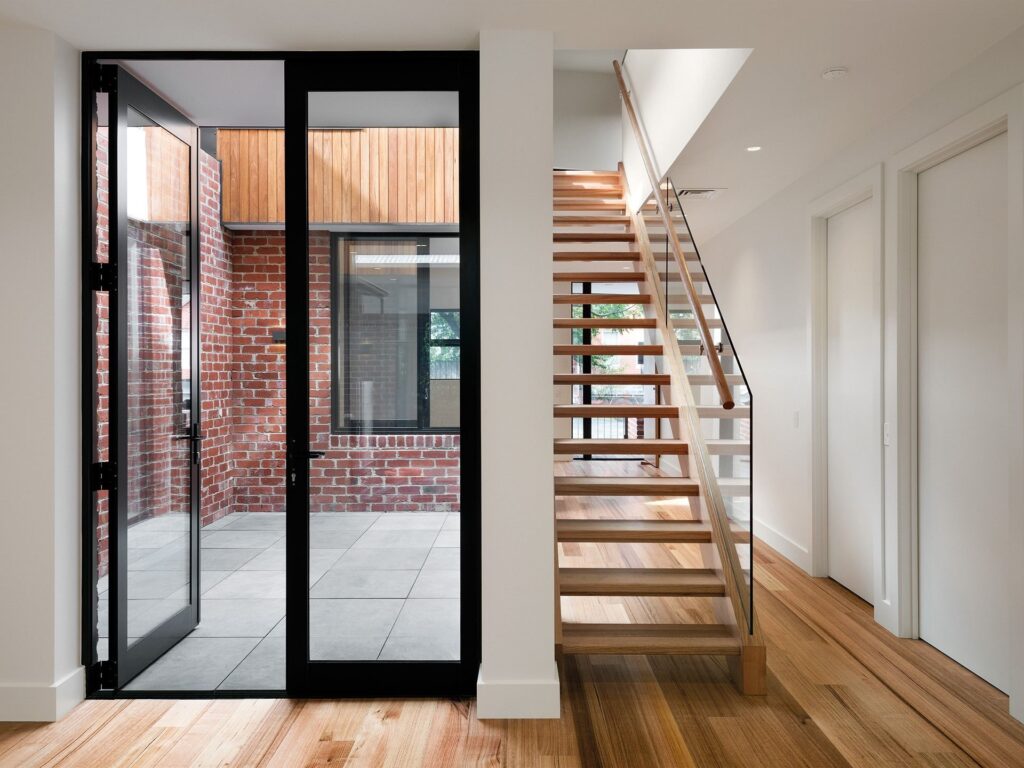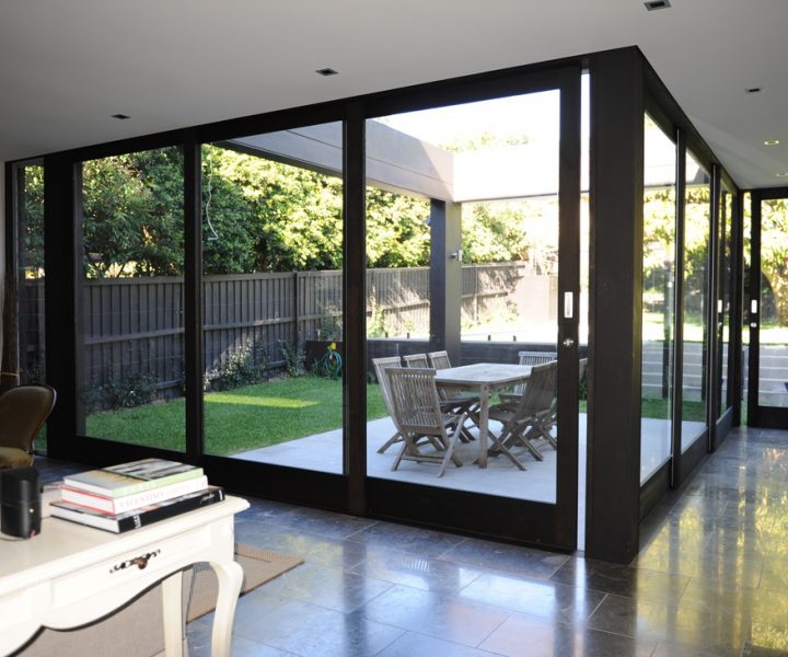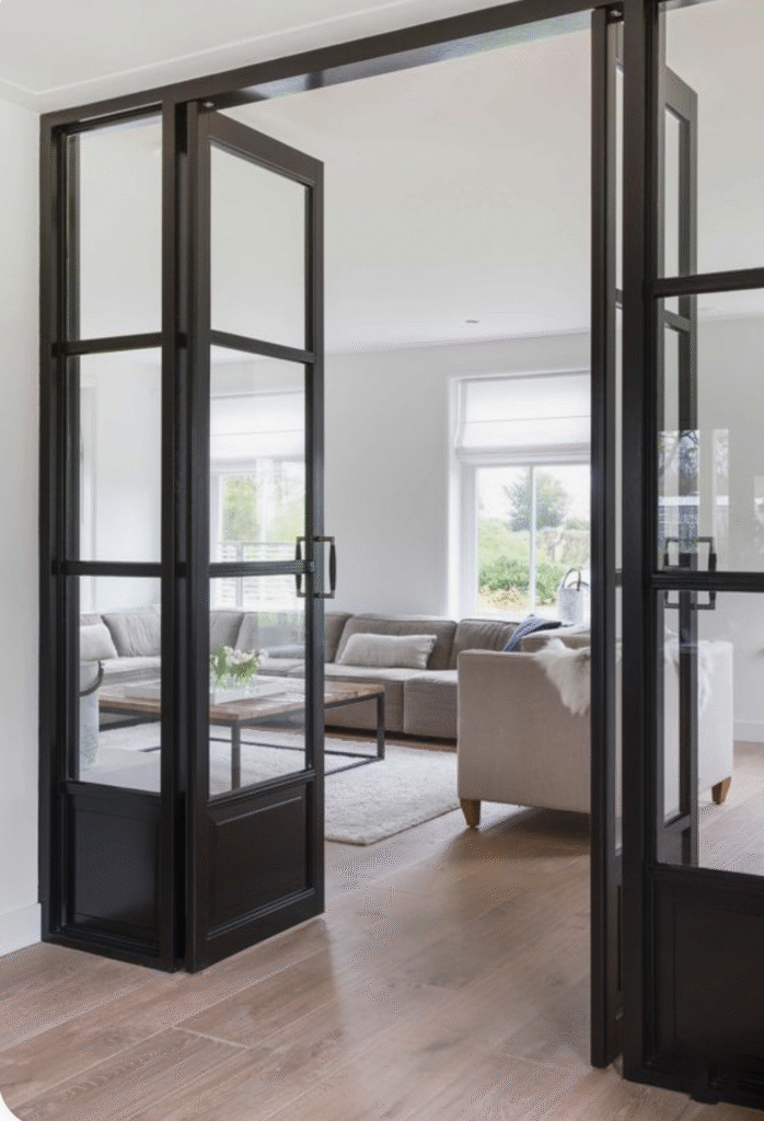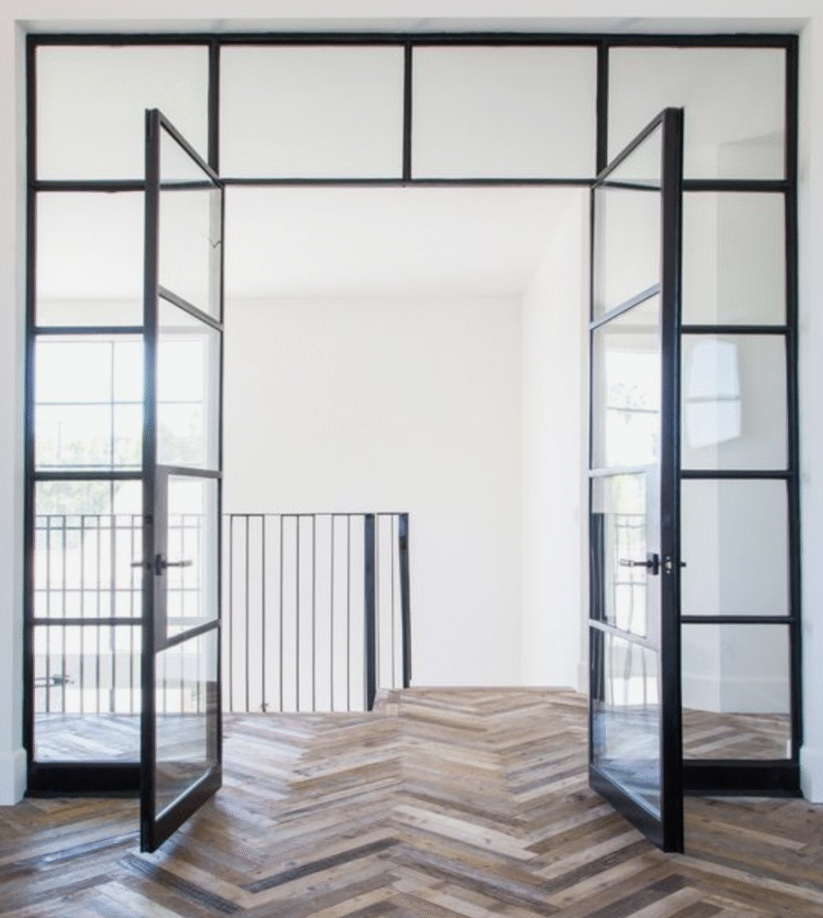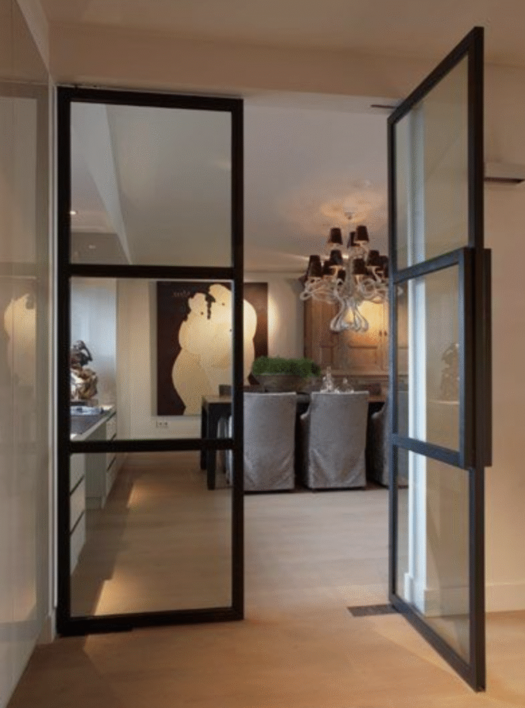 هي عبارة عن عن باب مفصلات درفة واحدة او درفتين او اكثر يقومان بالفتح مع بعضهما البعض يتم استعمال مقاطع ١٠سم او ١٢سم عمق مع سماكات مختلفة تتراوح من ١.٦مم الى ٢مم مع استعمال زجاج مزدوج ٢٤مم مكون من ٦مم زجاج و١٢مم فراغ و٦مم زجاج