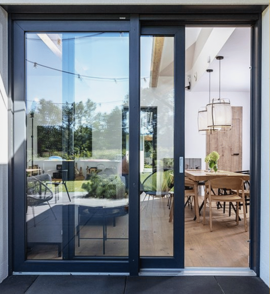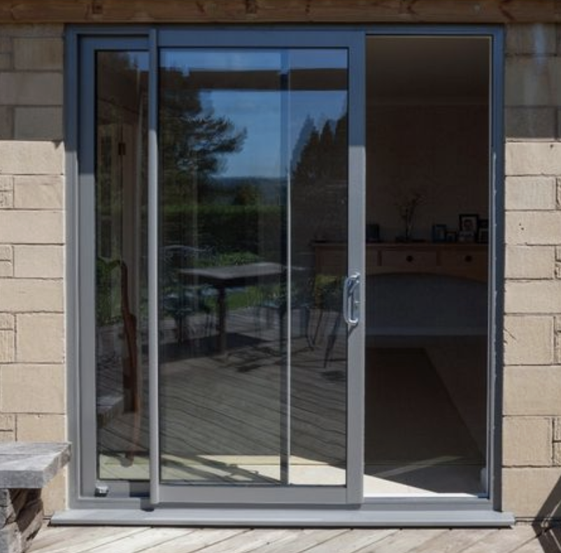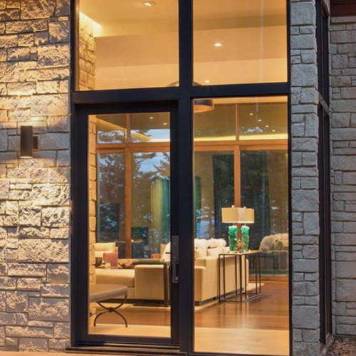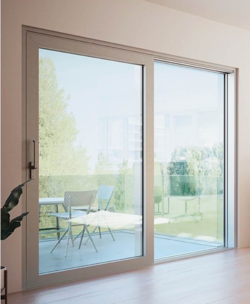 هي عبارة عن باب مكون من عدة درف مصنع من قطاع ١٠ أو ١٢ سم حسب حالة الموقع ورغبة العميل وتتراوح السماكة من ١.٨مم الى ٢مم ويركب عليها عليها زجاج مزدوج ٢٤مم مكون من ٦مم زجاج و ١٢مم فراغ و ٦مم زجاج