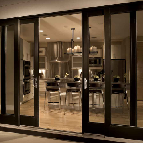 هي عبارة عن باب مكون من عدت درف حسب حالة الموقع ورغبة العميل, يستعمل إطار ألمنيوم على الزجاج ويكون مزدوج (دبل) ٦مم و١٢مم و٦مم